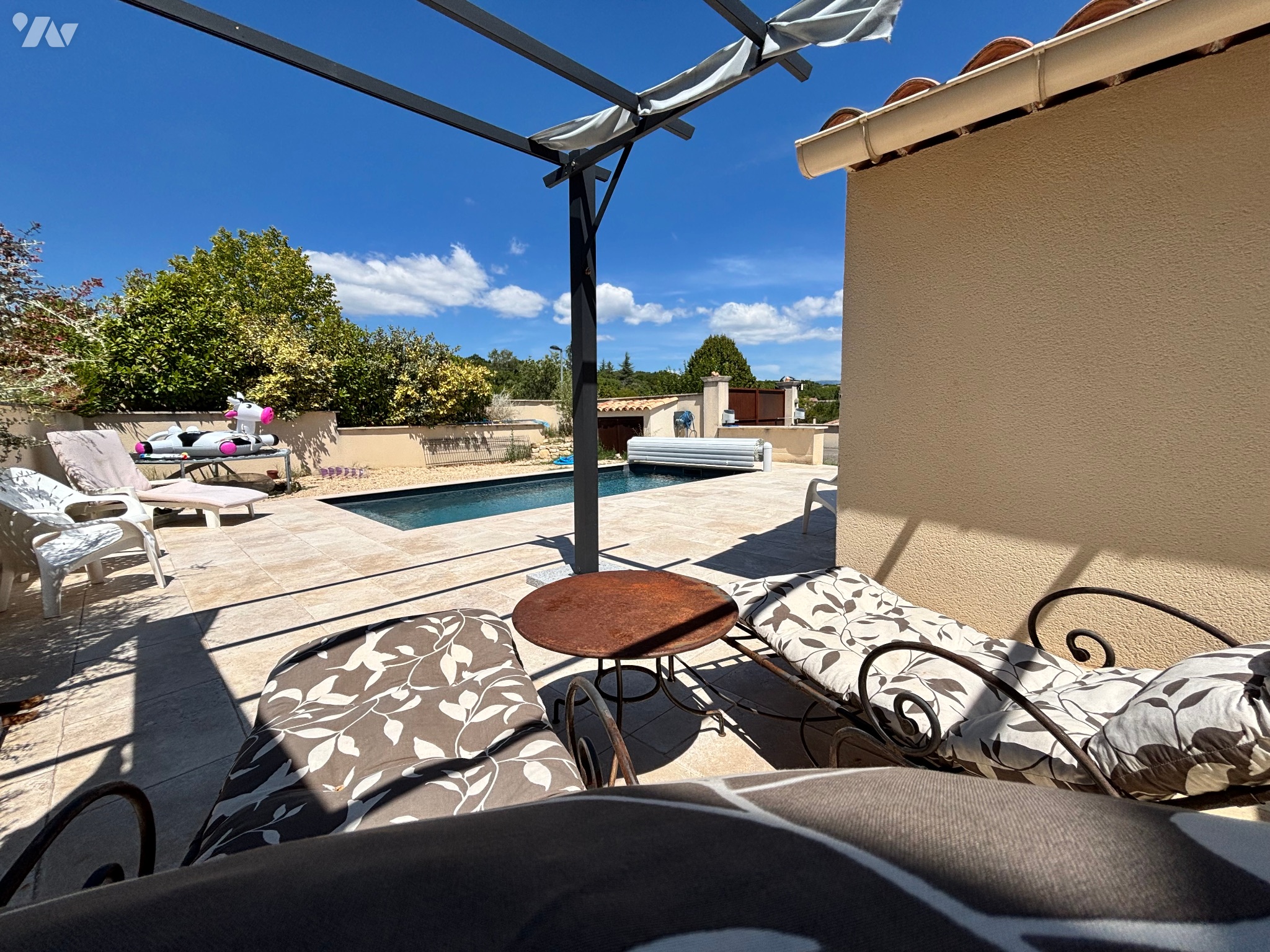 Elle vous plongera dans une atmosphère chaleureuse et accueillante, ses espaces de vie sont organisés comme suit : un vaste salon baigné de lumière bénéficiant de deux accès directes à une des terrasses et à la piscine, une cuisine ouvrant sur salle à manger, avec accès direct à la terrasse couverte, un dressing, trois chambres dont une avec salle d'eau, un wc indépendant et une deuxième salle d'eau.